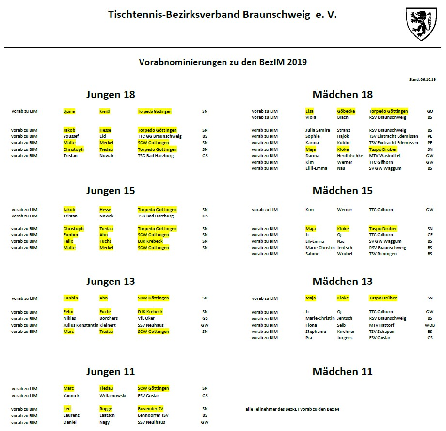 | Mädchen 15 Einzel | bis 3000 | Südniedersachsen | 26.10.2019 12:00 Uhr | ja |