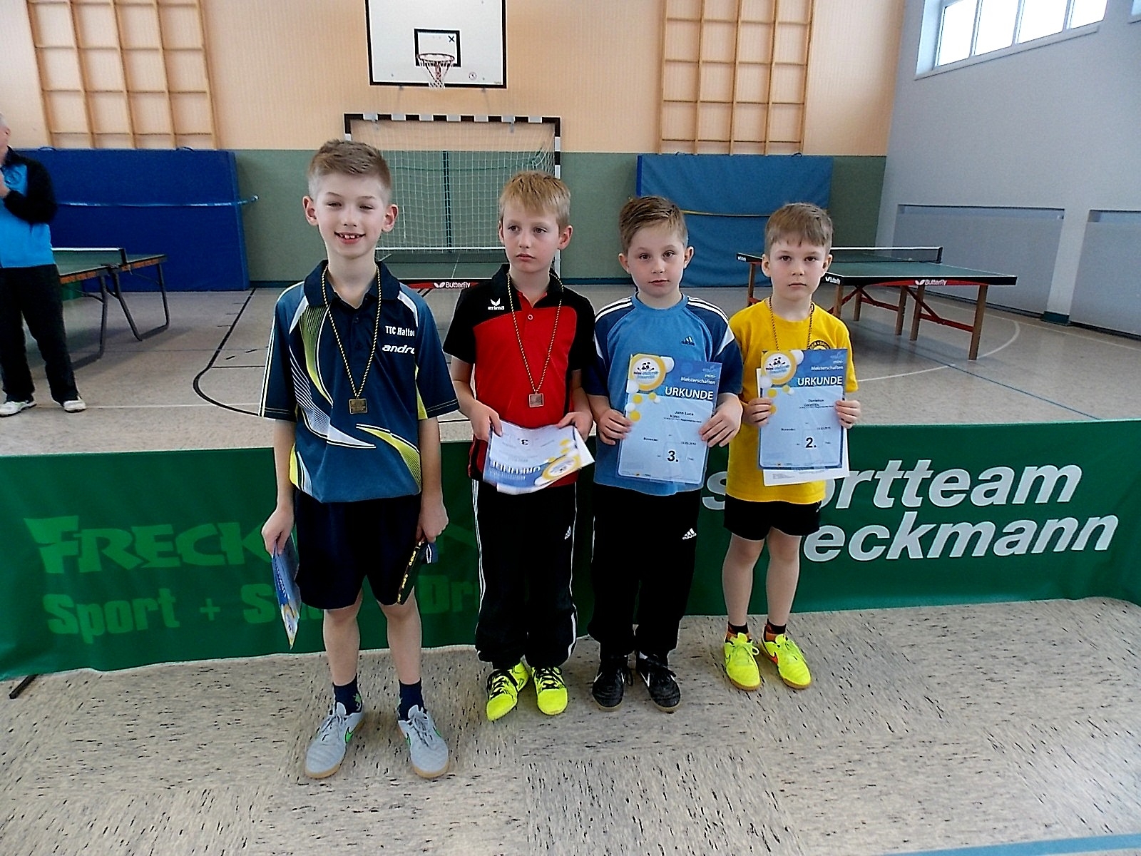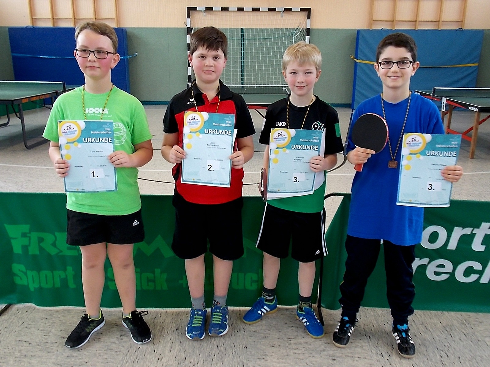 Am Regionsentscheid der Minimeisterschaften 2016 haben 37 Kinder teilgenommen, die sich zuvor in den Ortsentscheiden der Vereine TTC Deitersen, MTV Markoldendorf, TSV Wiensen, TSV Elvershausen, TSV Hammenstedt, TTC PeLaka, TTC Herzberg, TTV Scharzfeld, Rot_weiß Hörden, Bovender SV und ASC Göttingen qualifiziert hatten. Es waren eine Reihe schöne Spiele zu sehen, und wir sagen an dieser Stelle herzlichen Dank an den Ausrichter vom Bovender SV und die Helfer, die so toll gezählt haben.